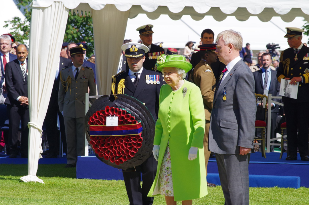 2014 年 6 月 6 日 伊丽莎白二世女王在法国巴约公墓诺曼底登陆纪念活动。
