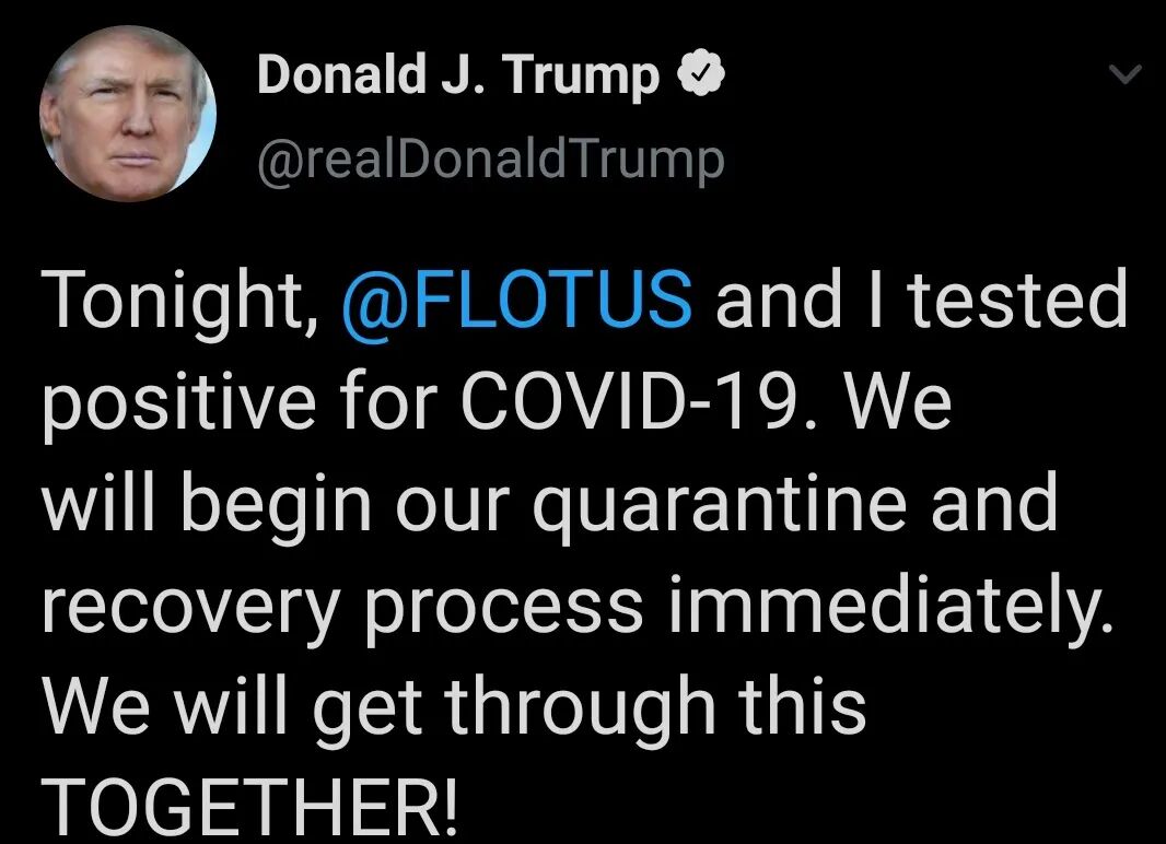没想到才过了一天,特朗普夫妇就被证实确诊了。