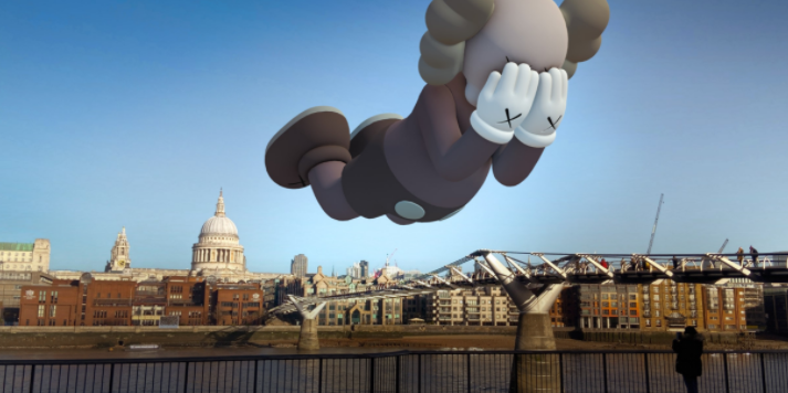 这一次,KAWS又将增强现实(Réalité augmentée)带到了自己的作品中。小伙伴们可以下载Acute应用程序,然后选择“Start Experience” ,单击“Artwork nearby”弹出的窗口,这样就可以在屏幕上寻找大师的作品了!