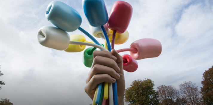 这件由彩色金属铝制成的巨大作品停放在Petit Palais附近,作品主体是一只人的手拿着一束十一色的彩色郁金香花束。郁金香花束被视为“纪念,乐观和恢复的象征”,伸出的手挥舞着一束五颜六色的鲜花,忠实于艺术家的流行风格,也影射了自由女神像挥舞着火炬的手,意味深远。