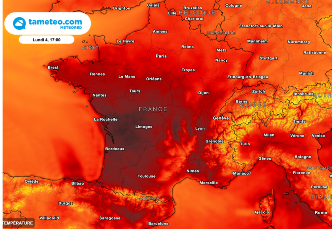 从周一下午开始,法国南西部的温度在局部地区逼近40摄氏度!葡萄牙沿海的冷涡将热空气送到法国,这个高压区预计将持续到周末。法国南西部可能会打破数十项高温纪录。