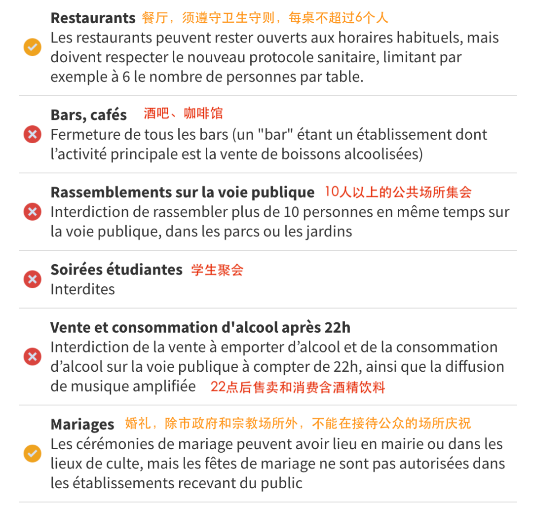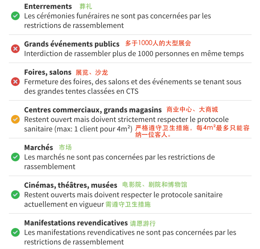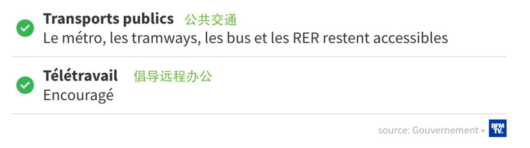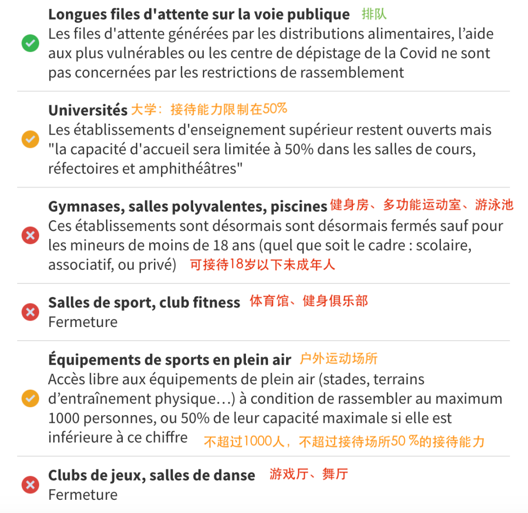 为了让大家更加清楚地知道什么能做,什么不能做,法国BFM电视台整理了一张列表。