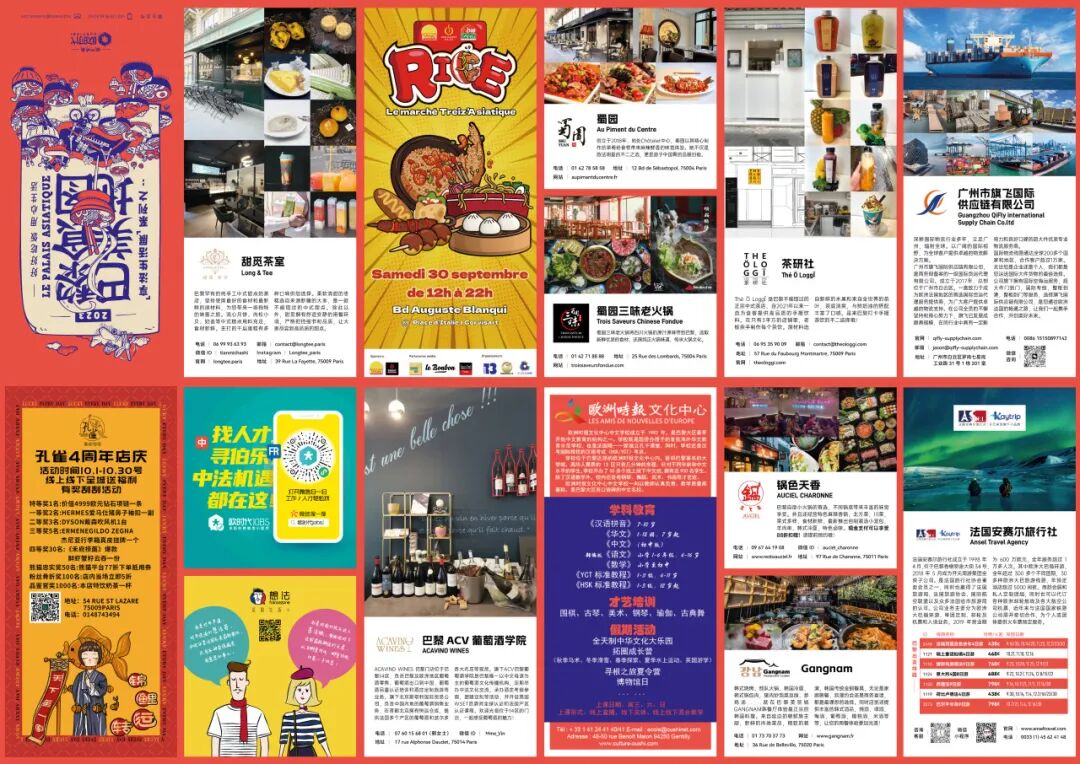巴黎美食地图反面由巴黎生活黄页构成。无论是美食、购物、娱乐,还是其他生活需求,我们希望这些黄页都可以为您的生活提供便利和支持,让我们一同探索并享受这座城市的多彩生活吧!