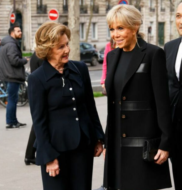 2023 年 3 月 8 日星期三,布丽吉特在纪念吉赛尔·哈利米 (Gisèle Halimi) 的全国悼念活动中显得比以往更加优雅,在巴黎司法宫,第一夫人穿着黑色裤装;