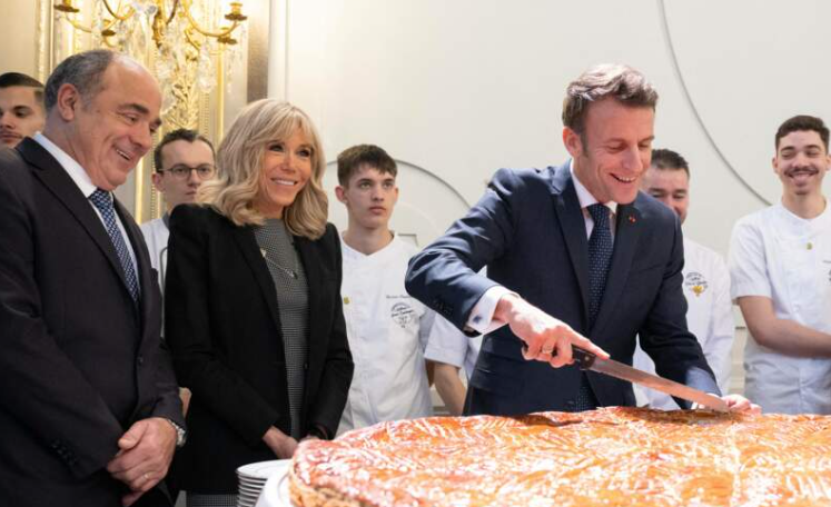 2023 年 1 月 5 日,布丽吉特在爱丽舍宫主显节期间穿上圆点连衣裙;