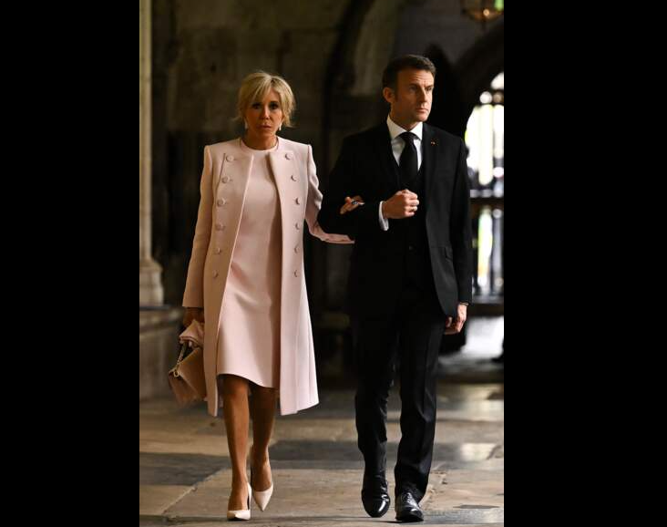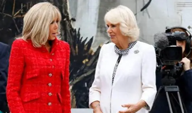 2023年9月21日,查尔斯夫妇访问法国的第二天,卡米拉王后和法国第一夫人布丽吉特一同参观了巴黎圣母院,布丽吉特穿红色小香风亮相;