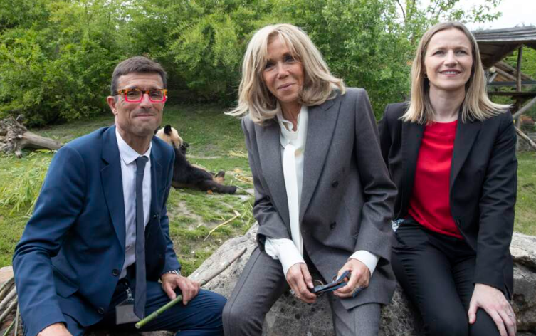 2023 年 5 月 17 日,布丽吉特在参观圣艾尼昂的博瓦尔动物园 (ZooParc de Beauval) 时,身着麻灰色套装,优雅至极;