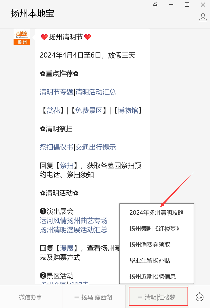 回复【祭扫】获取扬州各墓园清明祭扫预约方式