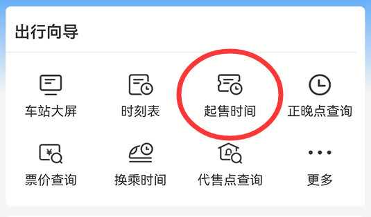 需要注意的是不同火车站车票网上起售时间并不相同,小伙伴们要根据自己购票的车站,查询购票具体时间,这里我们就可以用铁路12306APP上的起售时间查询功能,进行查询哦。