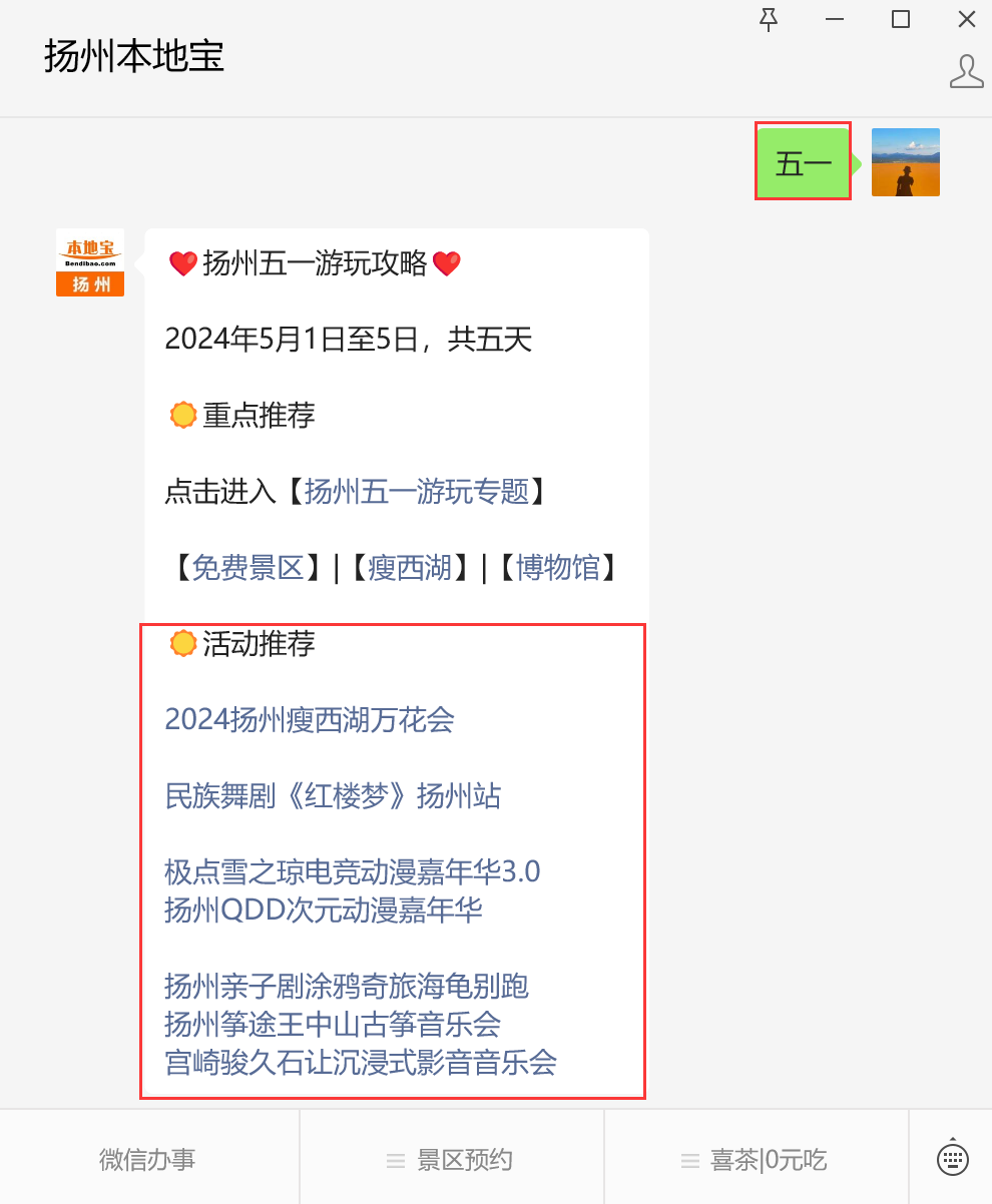 回复【五一】可查看扬州五一假期活动及游玩推荐
