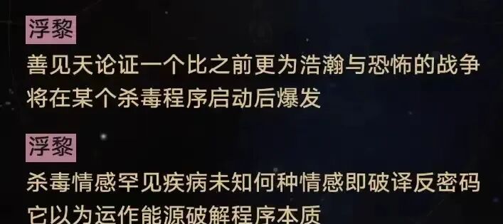 而将宇宙中“记忆”作为“大补之物”的【记忆】星神浮黎自然不会错过这场战争。说祂推动了这场恐怖战争的形成吧,祂似乎什么都没做,仅仅是用自己的善见天论证了一个观点,可若要说祂未曾干扰这一切的发生,那【神秘】星神迷思又作何解释呢?