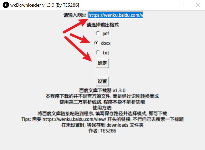 然后把它粘贴到软件顶部的输入栏,选择需要格式,点击“确认”按钮,静静等待几秒钟搞定: