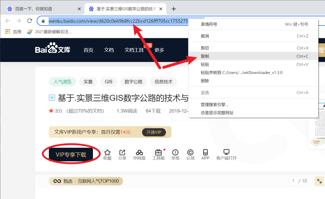软件无需注册登录,完全免费,也没有任何广告,操作自然也是十分简单,我们就实际演练一下好了,随便打开一个文档地址,复制其网页链接: