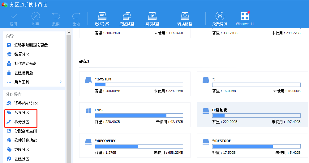 不仅如此,也支持合并分区以及拆分出的新的分区,可以说非常的贴心: