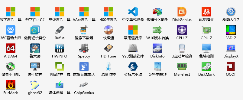 就拿装机必备的软件来说,包含了所有常用的办公、娱乐、学习资源,比如说有:Windows运行库、硬件检测工具、分区、驱动工具等等,不一而足: