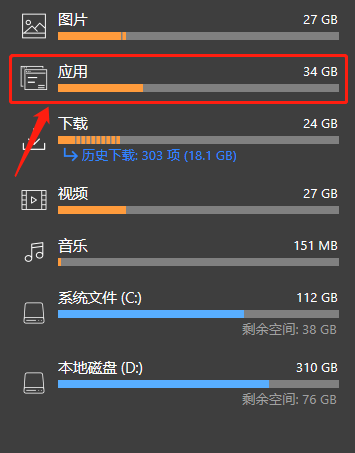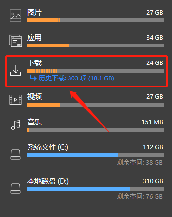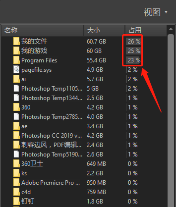 另外,当你的硬盘爆满,开始飘红的时候,这个工具也能帮我们分析出是哪些资源比较占硬盘,之后该转移的就转移,该删除的就删除,就相当Easy了。