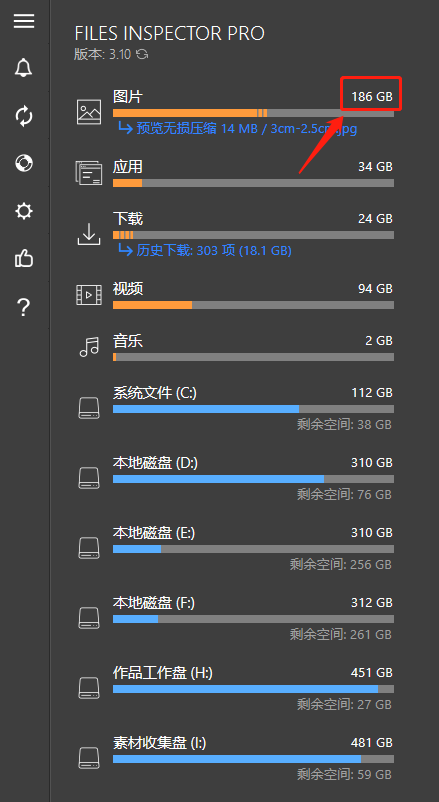 软件初次打开,便会自动检测你的电脑,真是不看不知道,刺客的电脑里,居然有这么多图片....,这还不包括自己网盘里的,有机会慢慢分享给大家吧。