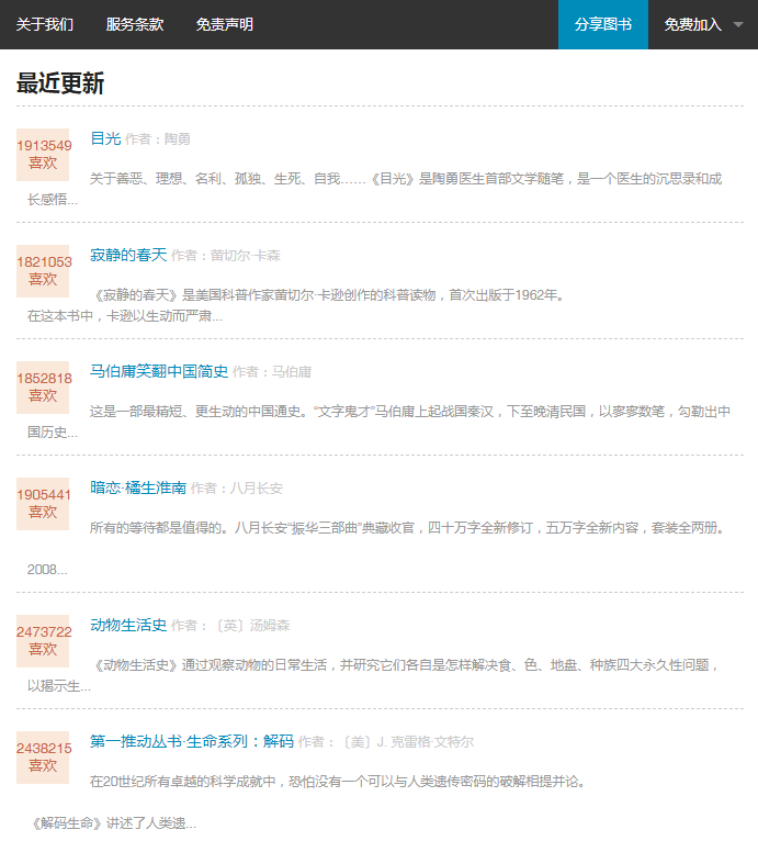首页是一些编辑推荐书籍,再往下拉则是最近更新的: