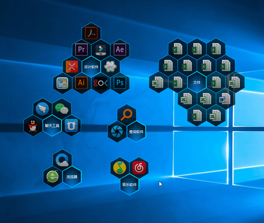 这是一款由蜂窝快捷盒子中提取出来的小工具,虽然小巧,但用途却十分巨大,主要作用就是整理收纳以及美化桌面的图标、文件。同时,刺客本次提供的为便携版,无需安装,解压即用。