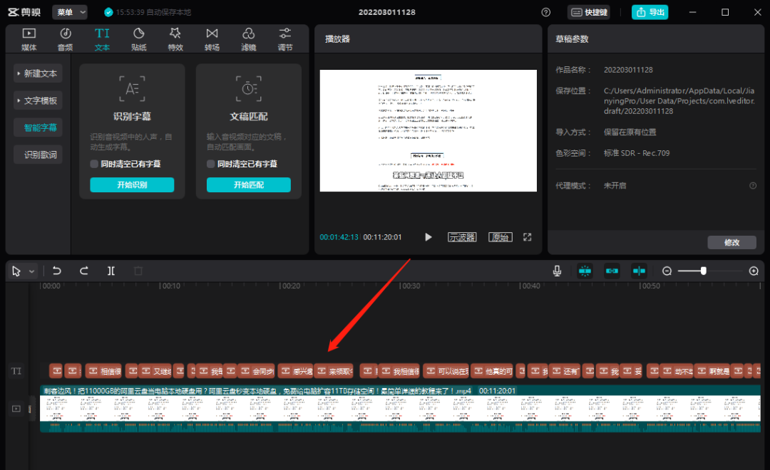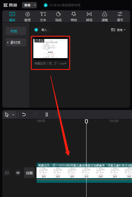 这么好的字幕,是怎么实现一键自动生成的呢?很简单,首先把需要生成字幕的视频,拖到编辑轨道: