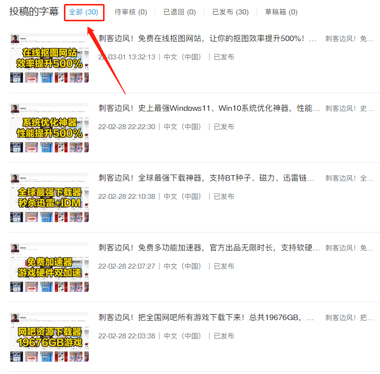 所以,从三月份开始,刺客的视频全部追加了字幕,不仅新视频如此,就连老视频也都追加了SRT字幕,令观赏体验感,得到了极大的提升!