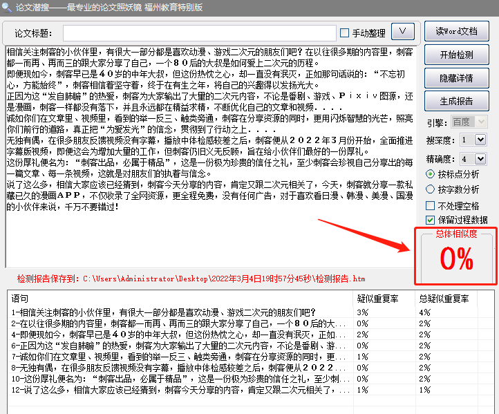 在检测完后,我们可以对重复的部分进行修改和调整,从而降低检测出的重复率,令这篇论文,或者文章,直接变成原创内容!