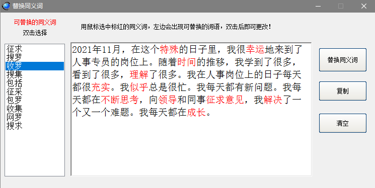 不仅如此,软件还提供了同义替换功能,可以将一些晦涩难懂的语句,变成通俗易懂的,非常的实用: