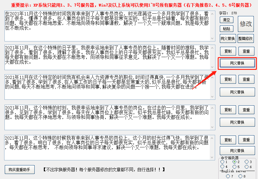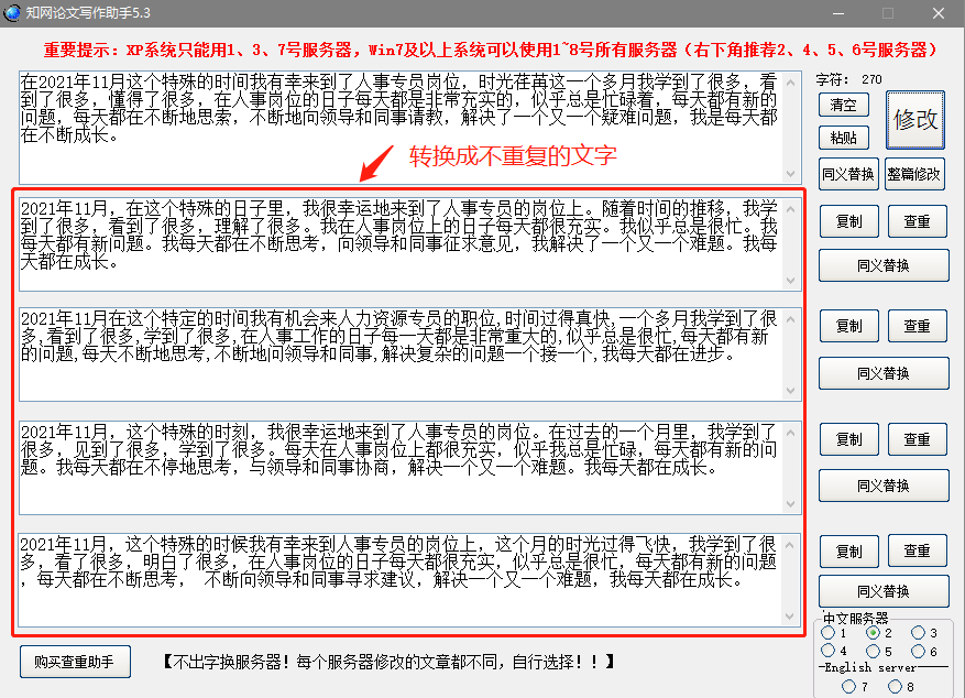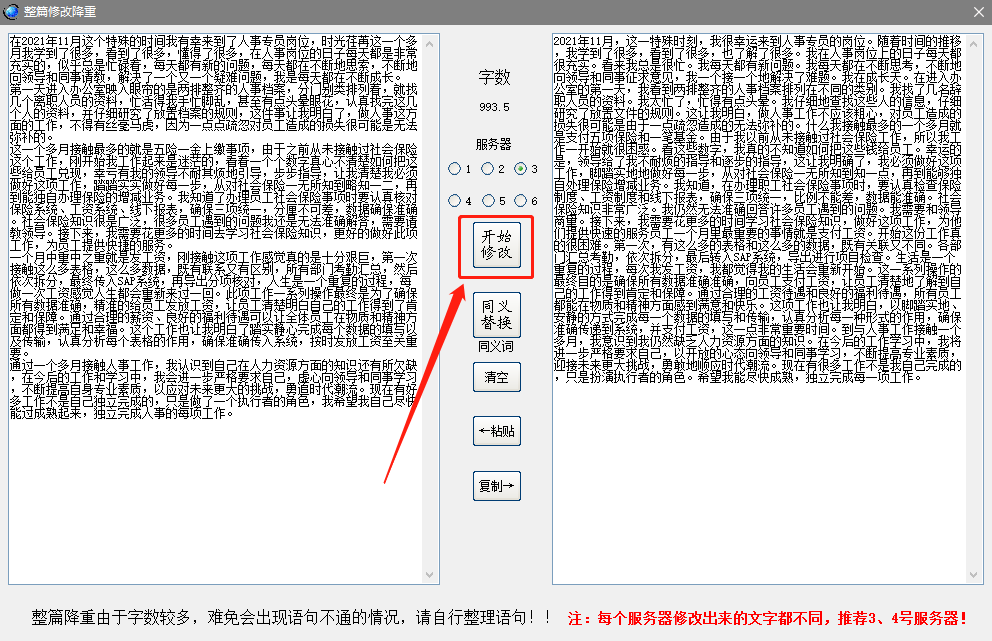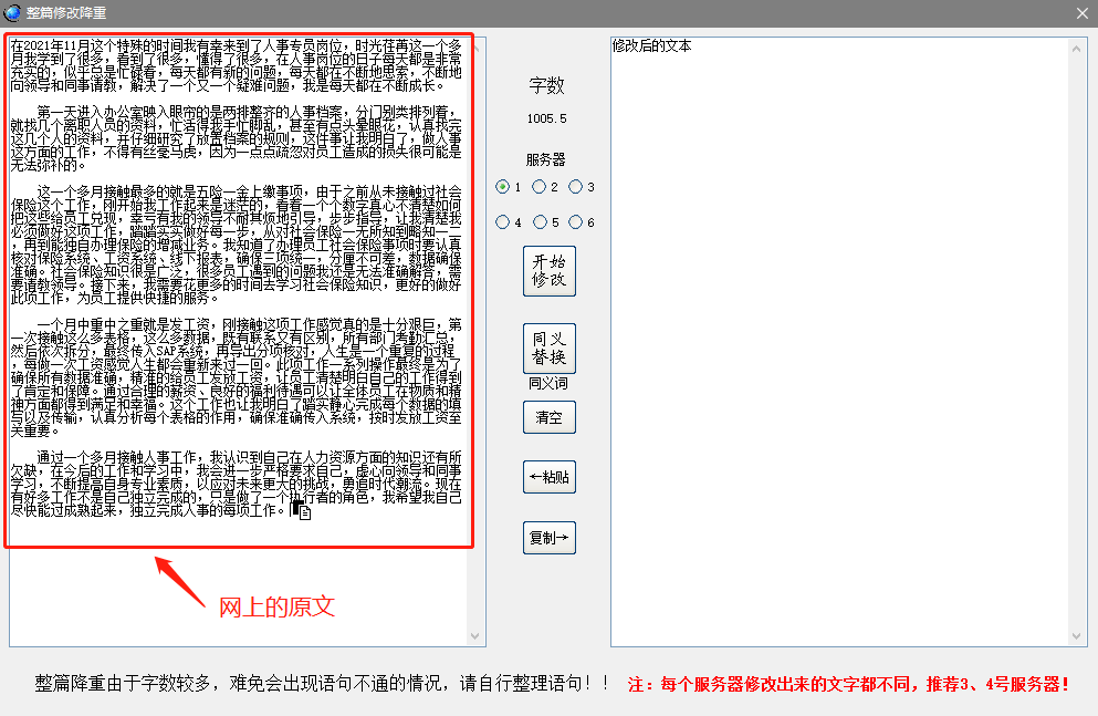 然后就是见证奇迹的时刻,软件会自动将上面的原文,转换成不重复的文章,这个真的太厉害了!