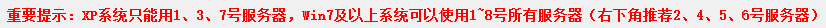 现如今应该都是Win7以上了吧,那么右下角选择对应的服务器就成,默认是2,别动它也可以: