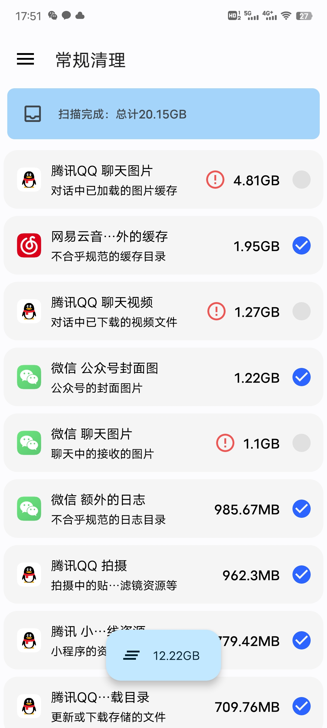 然后瞬间就能清掉12.22GB的垃圾缓存,就问你服不服!