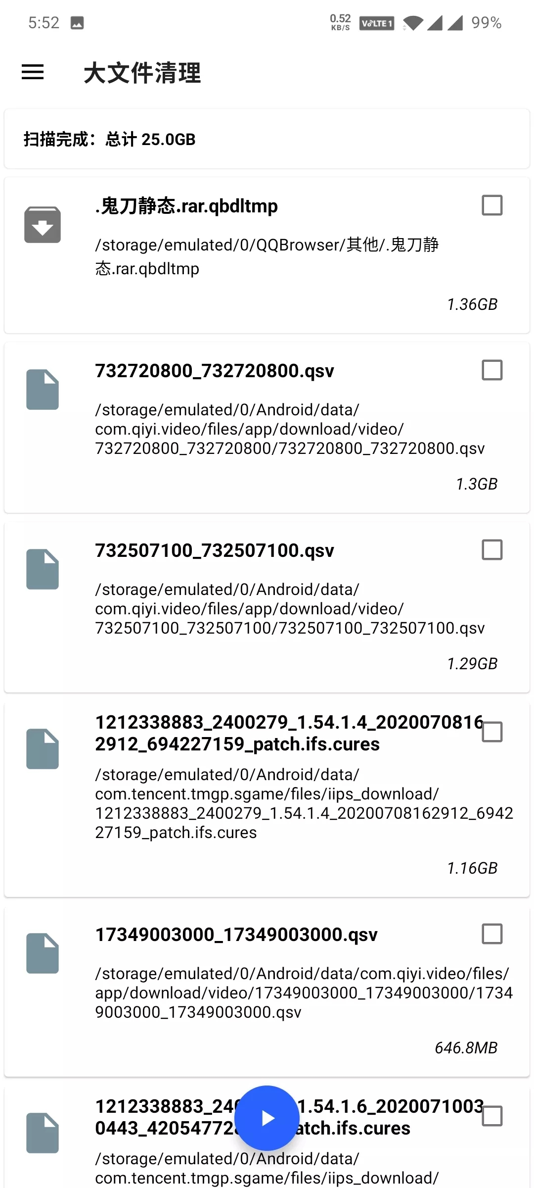 然后就是这个大文件清理,这绝对是喜欢观影、追剧、玩游戏小伙伴们的最爱,尤其是很多在线播放的视频缓存文件,在没有清理之前,我们压根不知道居然有这么多....