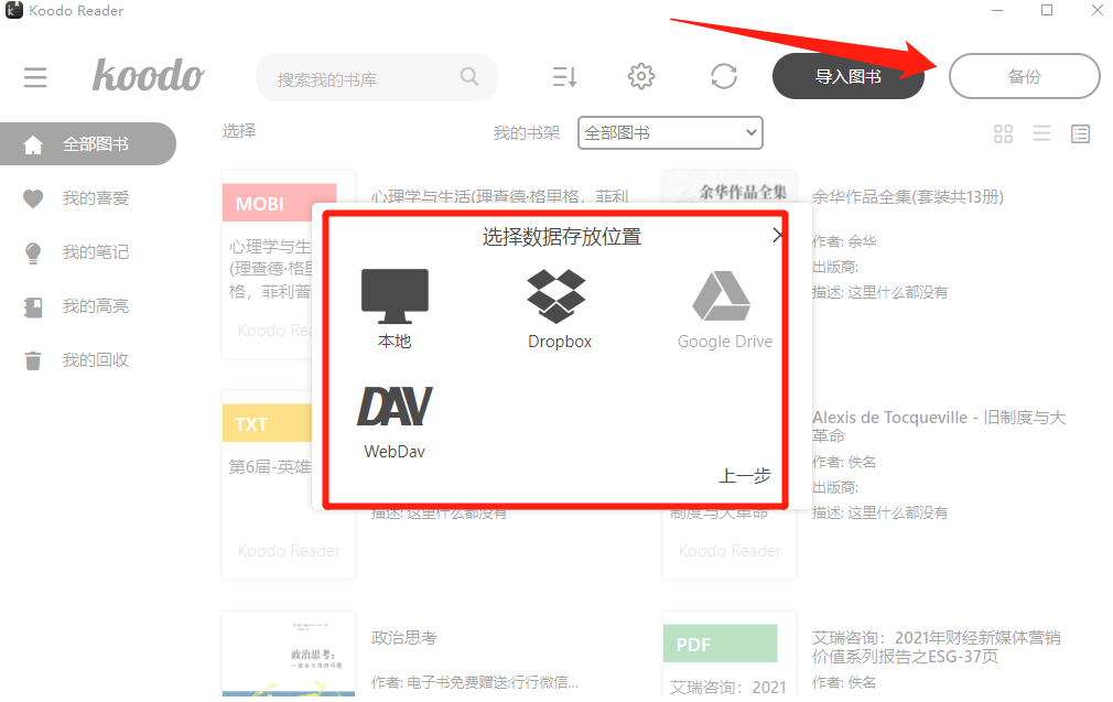 当我们更换别的电脑时,点击“恢复”,就可以同步之前的电子书了: