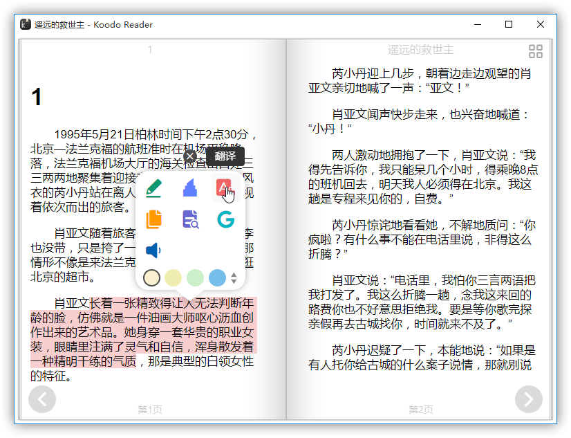 不仅如此,软件内置了很多新奇的玩意,比如颜色高亮、以及笔记等,可以随时随地的对电子书进行标记: