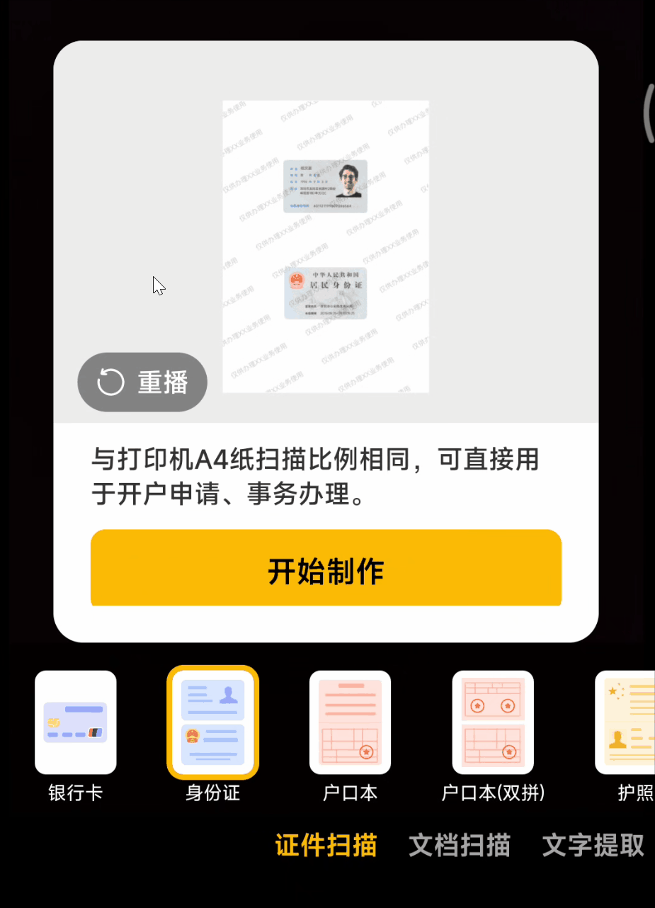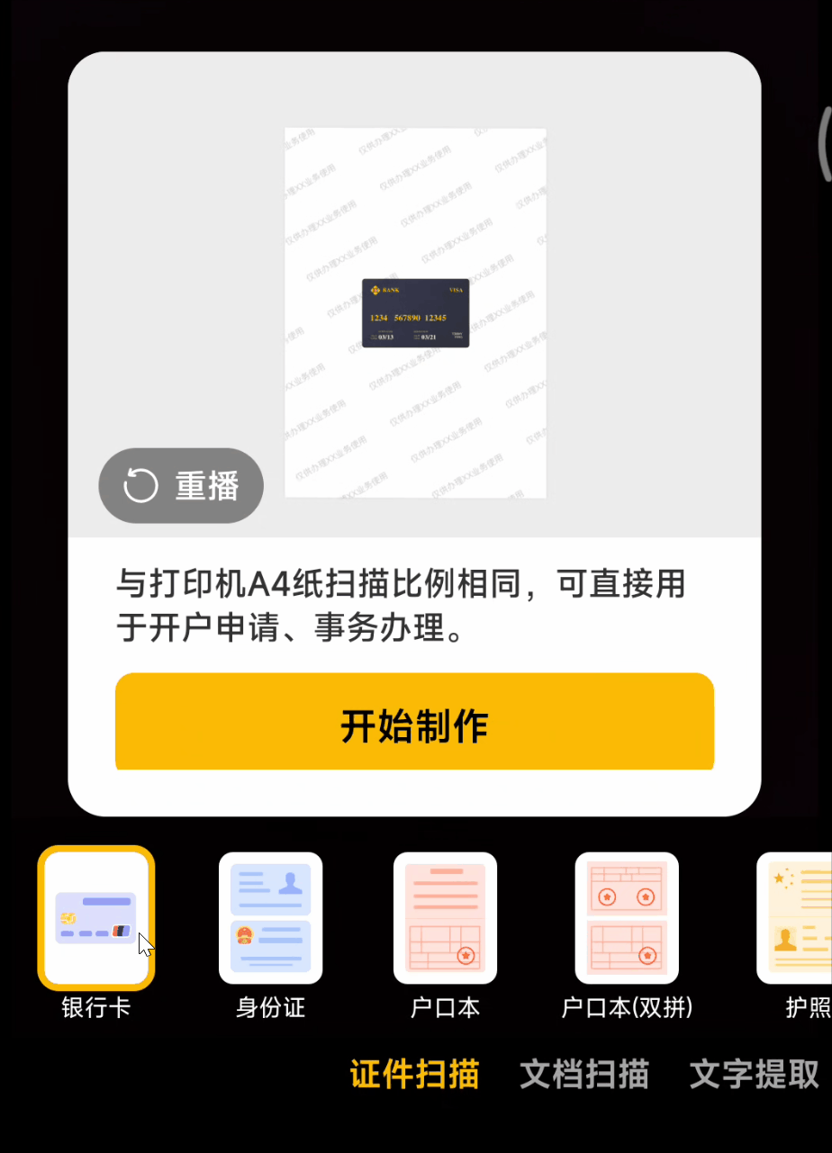并且,提供了银行卡、身份证、户口本、护照、驾驶证、行驶证、卡证等所有证件的扫描: