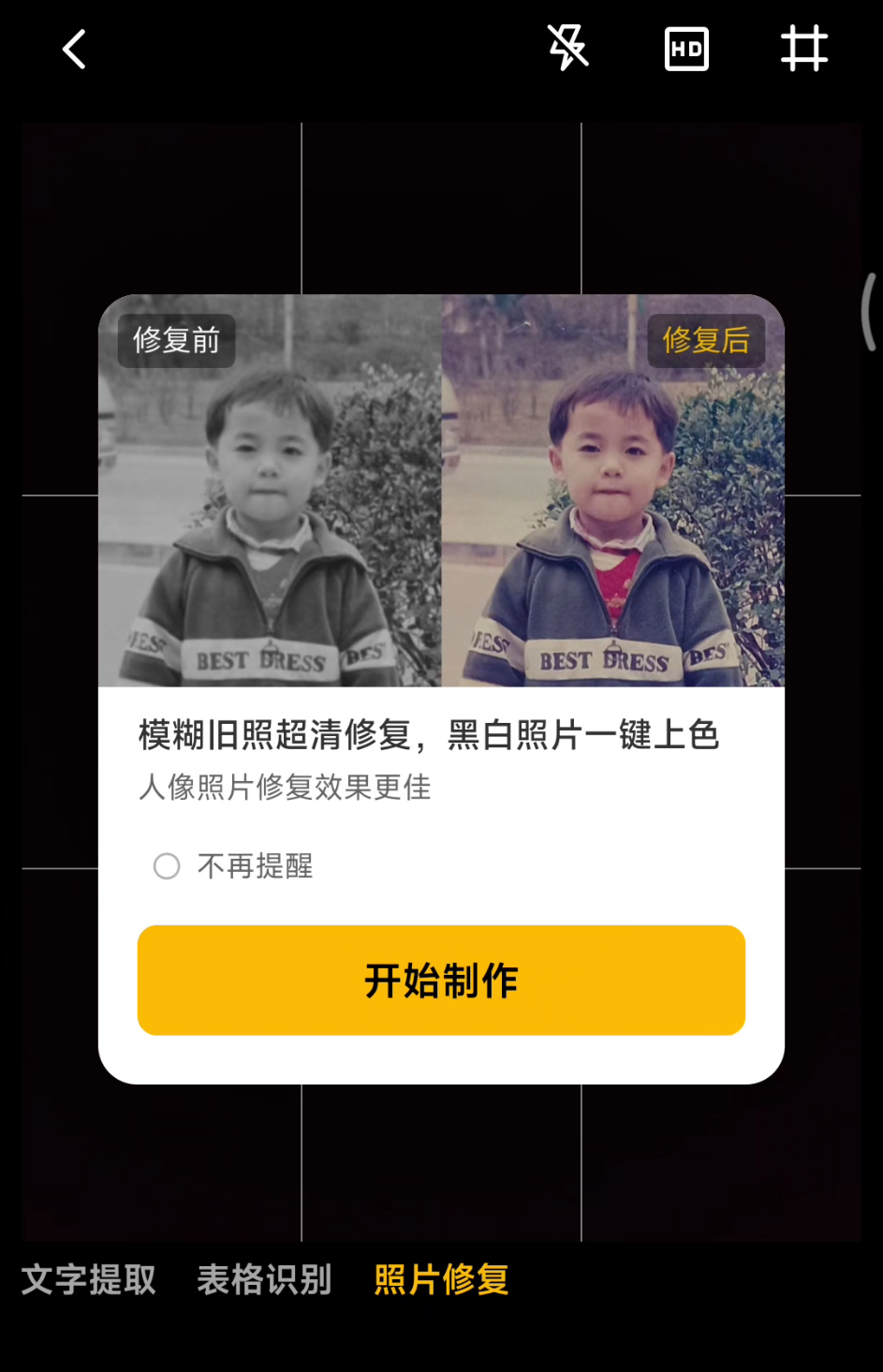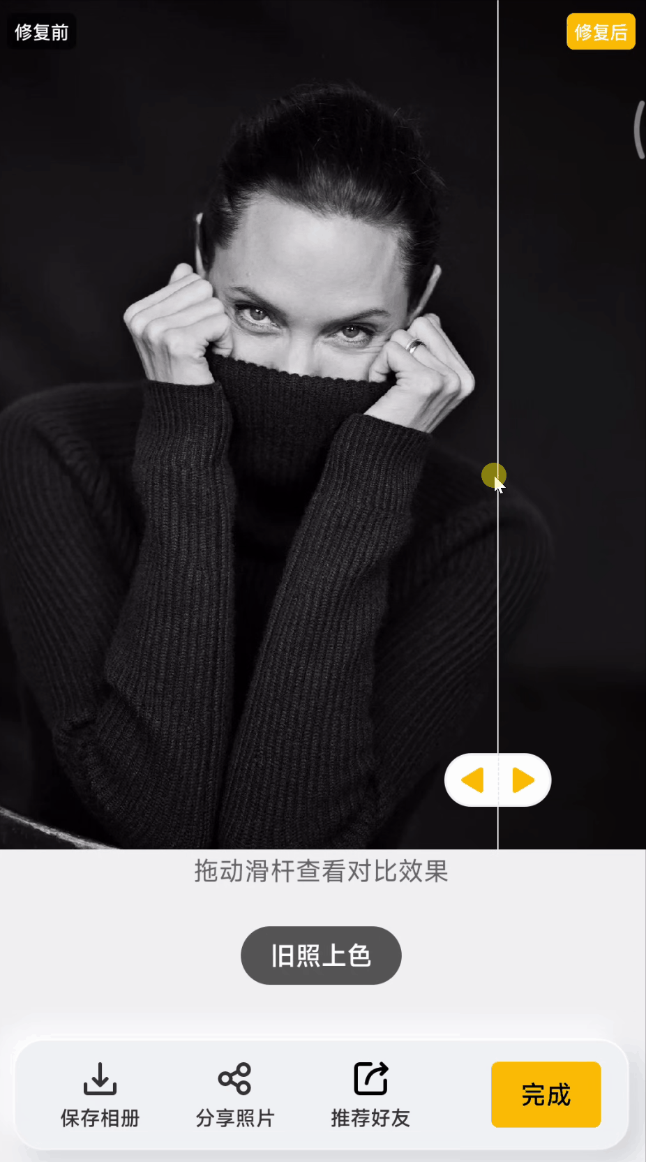 这都还不算什么,要知道今天的APP,更是附带了照片修复功能!可以将模糊旧照超清修复,黑白照片一键上色!