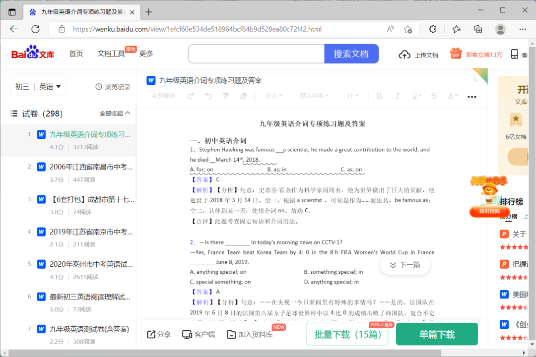 然后我们实际操作一下,首先,打开想要下载的文库资源: