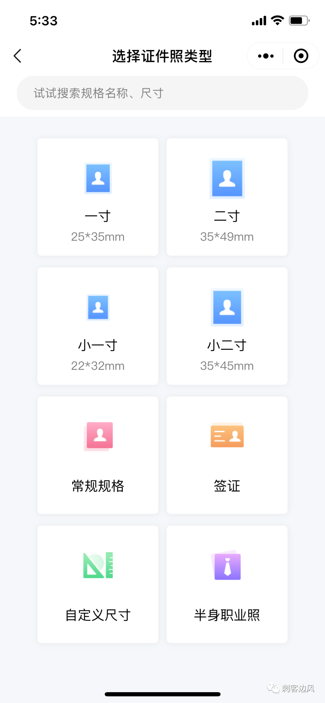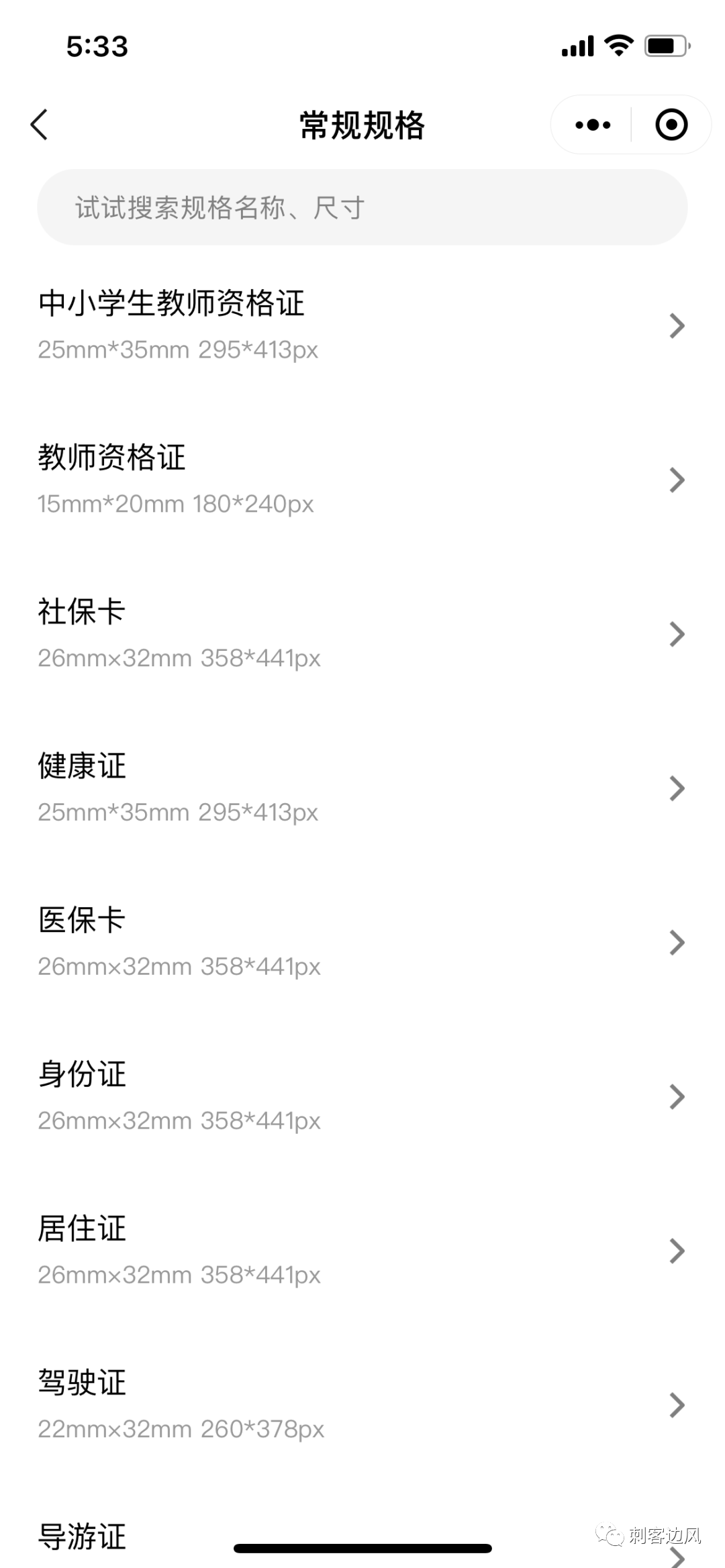 除了标准尺寸外,甚至按证件的属性进行了归类,真的非常体贴了。