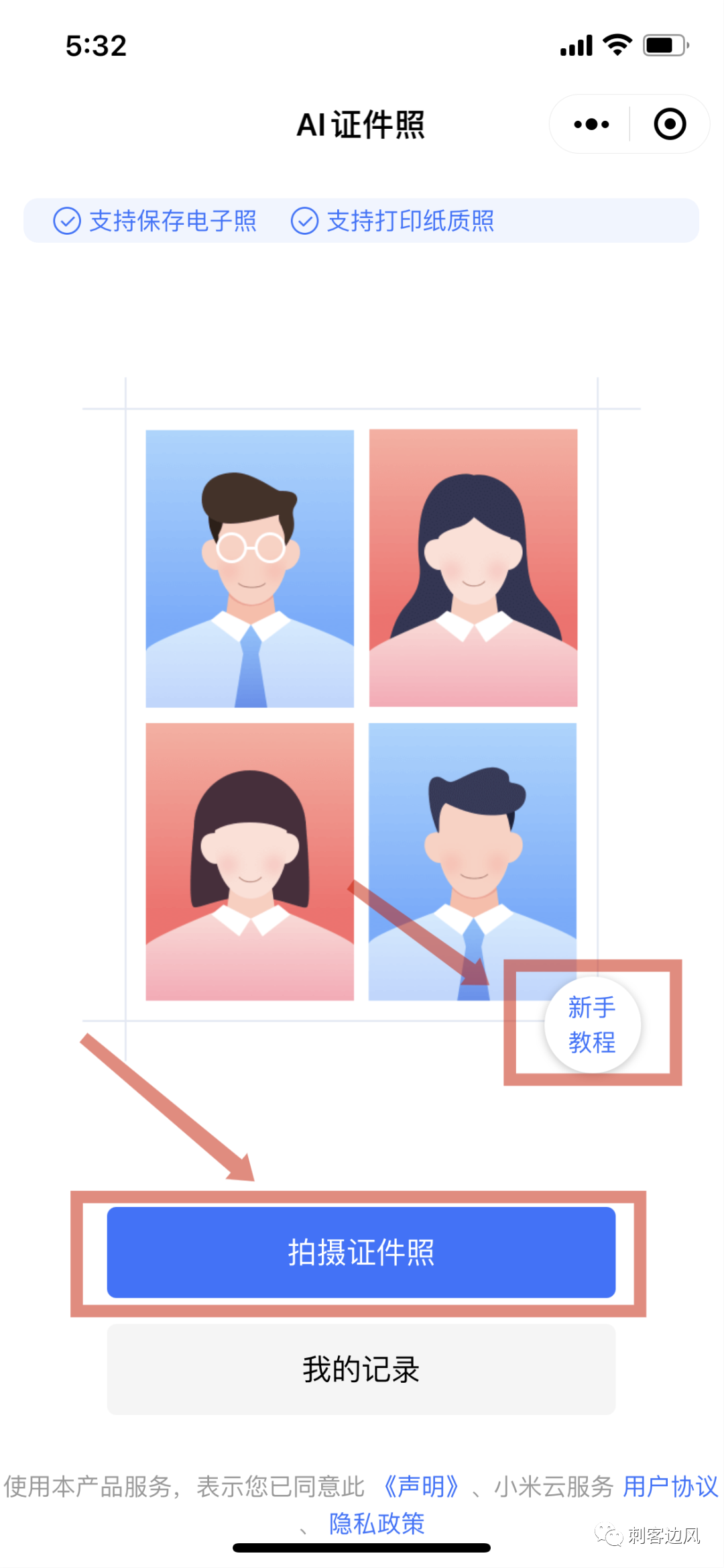 如果是选择相机拍照,也会有一些贴心的说明,便于大家操作: