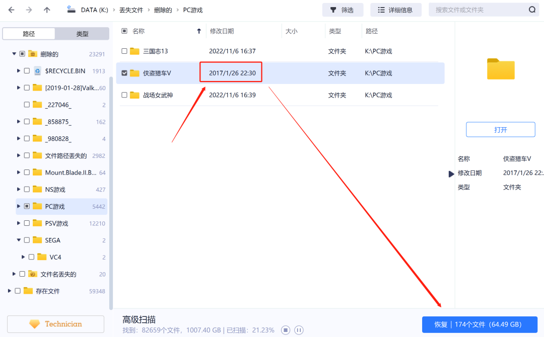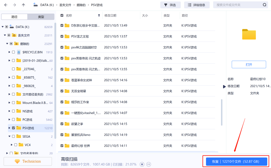 像刺客之前删除的PSV游戏文件夹,有整整52.87GB,如今可以一键恢复!牛!