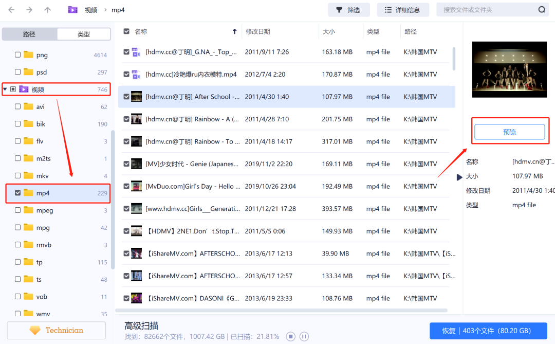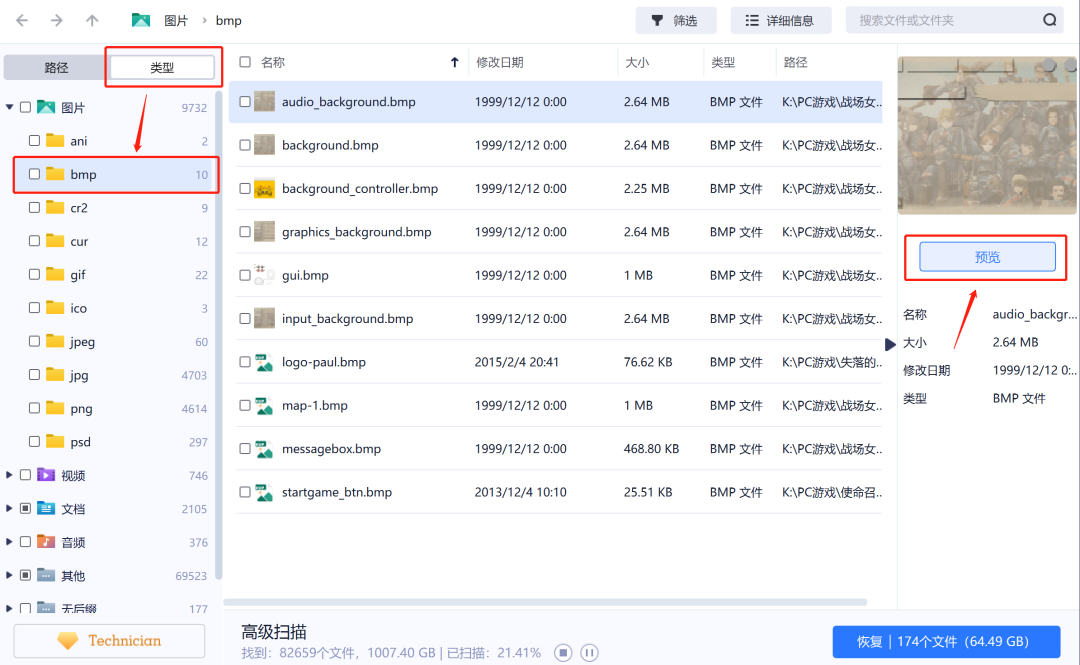 再细致一点,甚至可以进行不同类型文件的恢复,比如不同格式的图片: