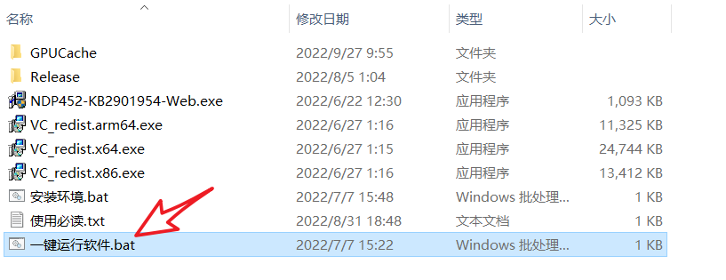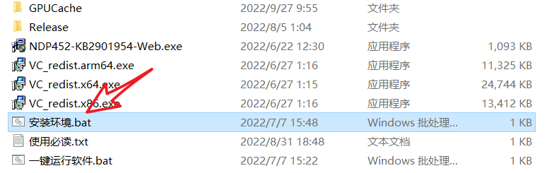 另外,如果双击这个.bat文件,没有任何反应,说明你的电脑缺少运行库资源,这也是很多小伙伴们玩游戏时常会遇到的问题,这个时候,我们就需要点击:“安装环境.bat”这个文件,来进行修复。