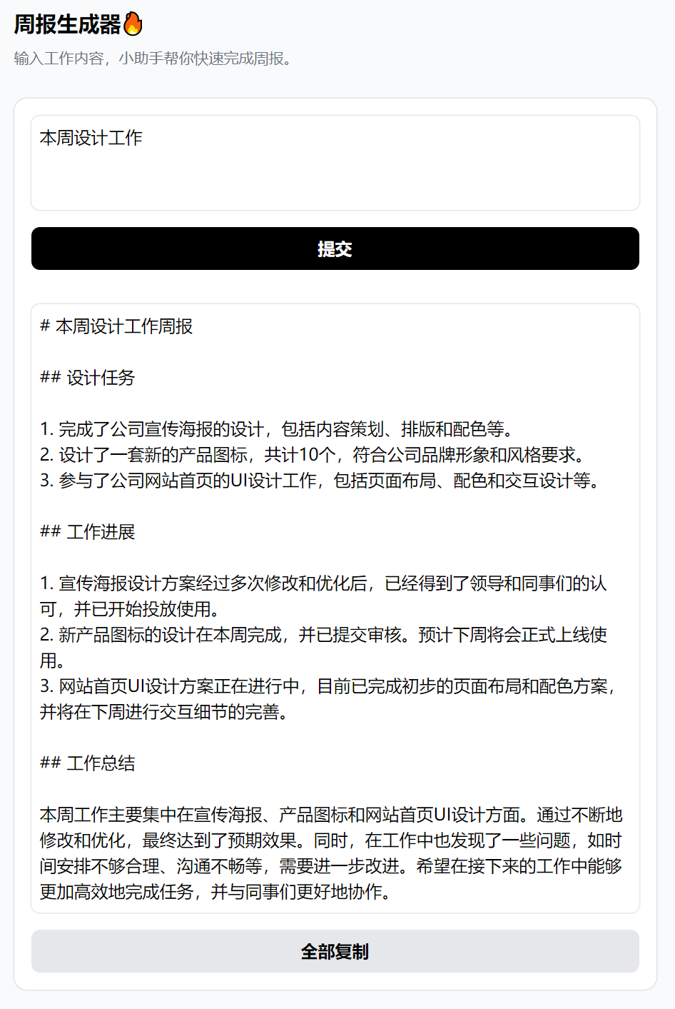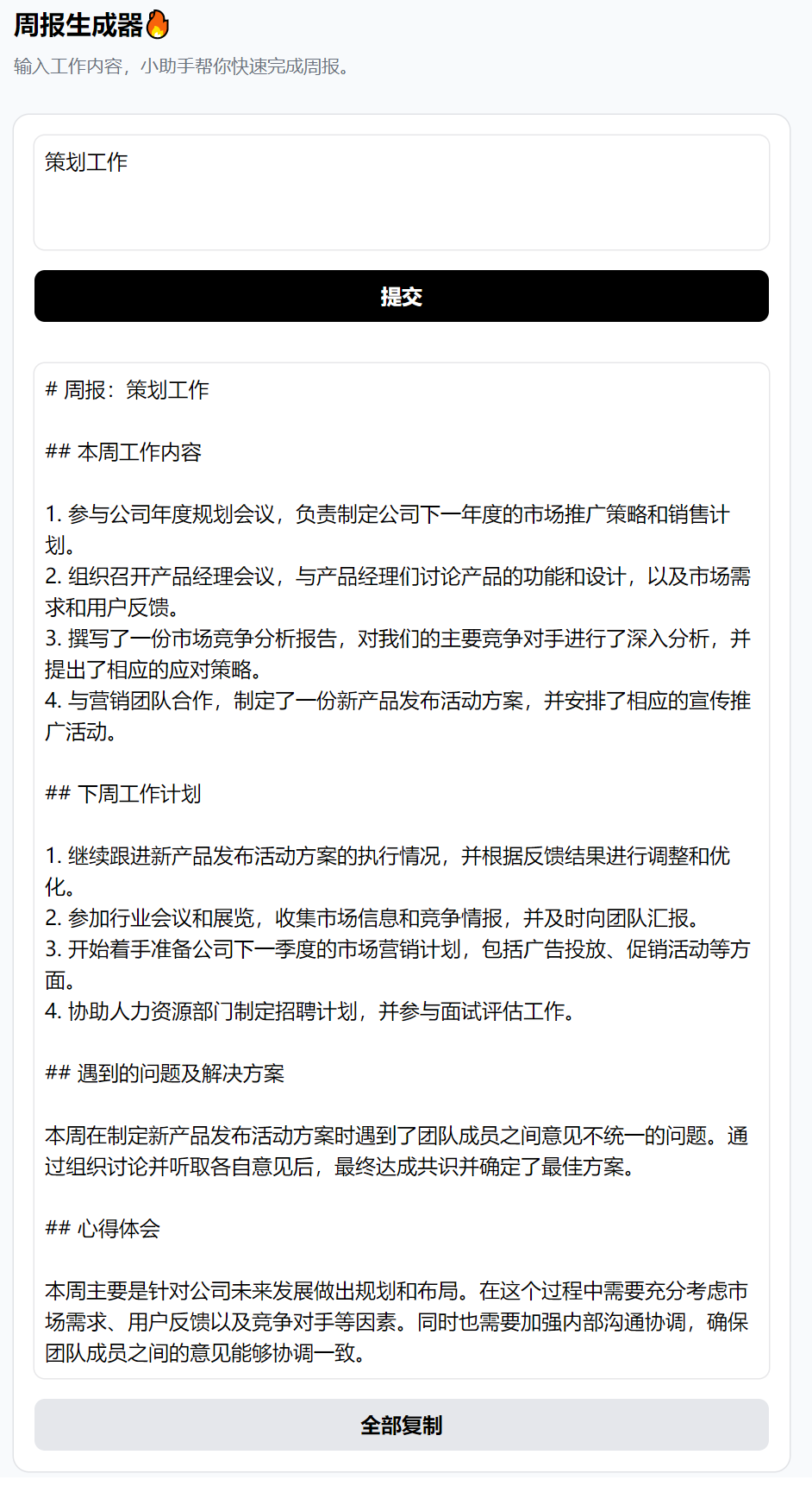 我们先来看周报生成器,这个对于职场打工族的小伙伴来说,简直就是必备神器!