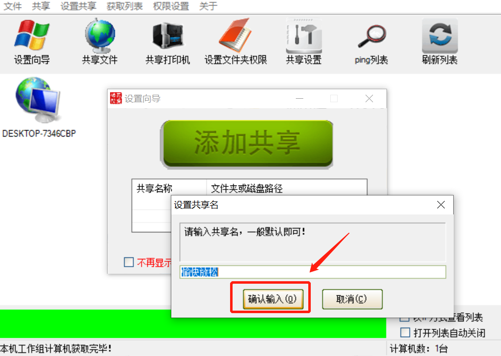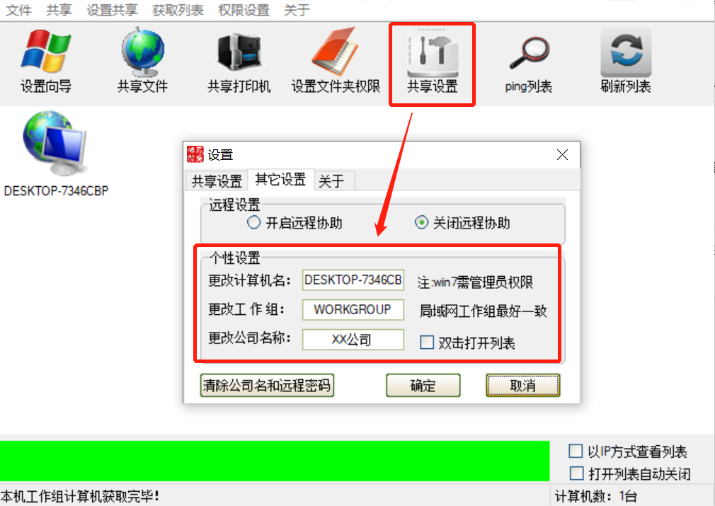 同时,点击顶部的共享设置,也都可以进行计算机、工作组等内容的修改: