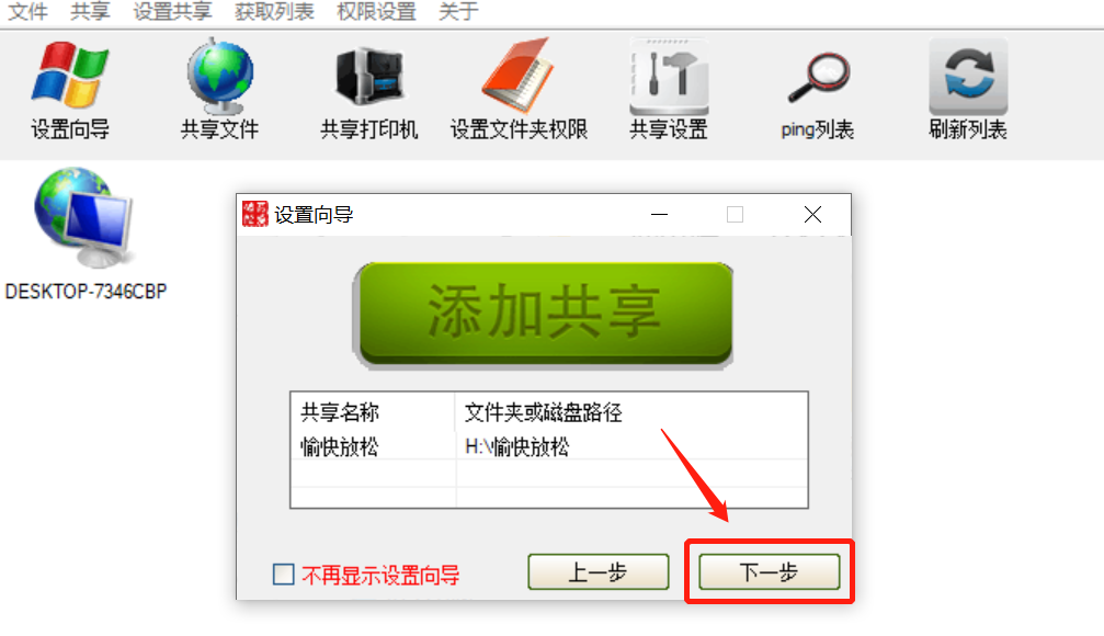 然后,选择你想要共享的盘符,基本就结束了;不过刺客建议大家,使用文件夹来进行分享,即便你是想分享整个盘符,也需要将这个盘符里的所有文件,归到一个文件夹里去。