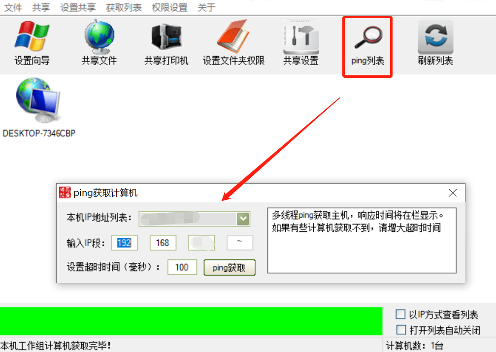 至于Ping列表,则能看到局域网中,所有电脑的IP地址,也是十分实用的功能:
