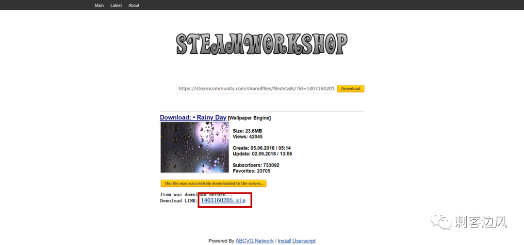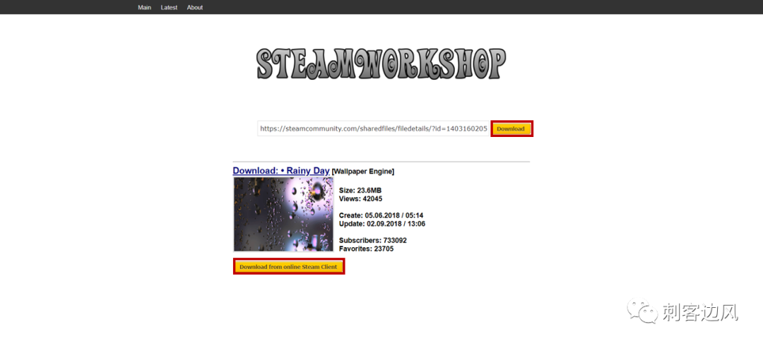 看到要下载的壁纸后,再点击Download from online Steam Client就会显示出Download Link,点击该超链接,便会自动进行下载:
