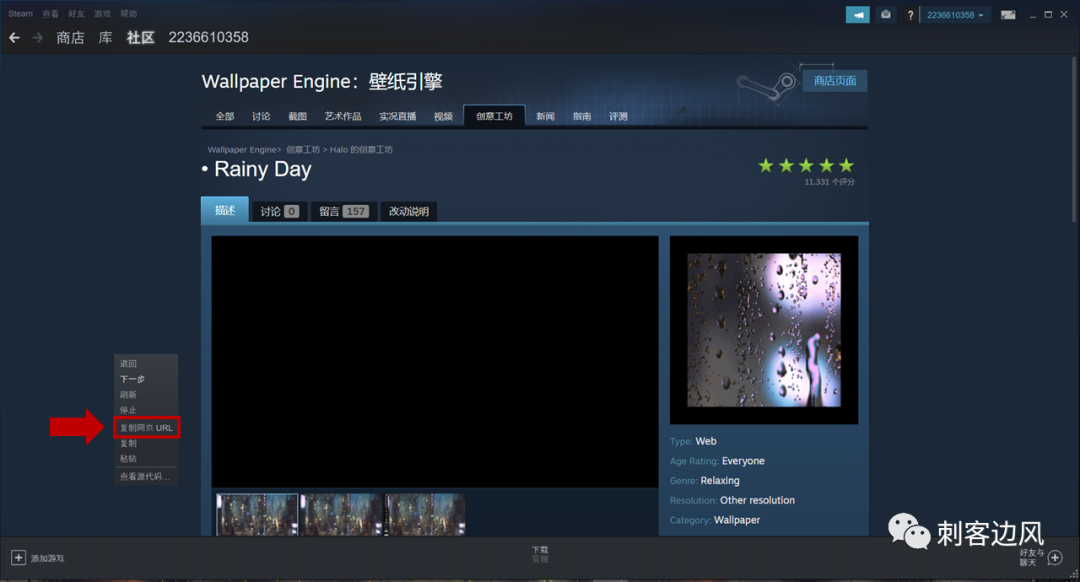 最关键的一步来了,点击相应壁纸,再壁纸详情页里,右击网页空白处,选择复制当前网页URL: