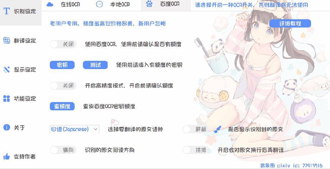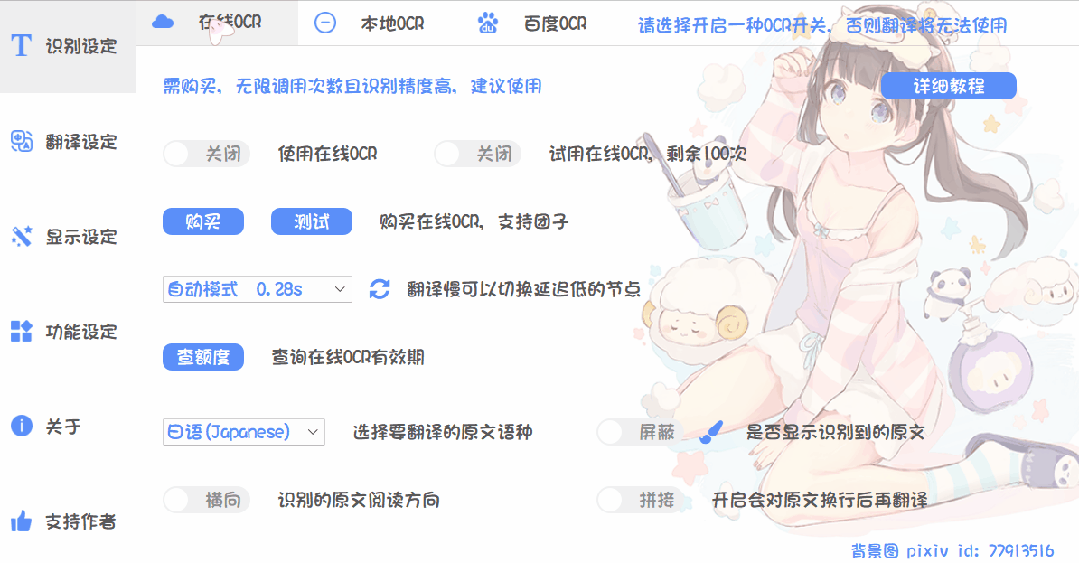 但其实最主要的是三种翻译方式,也就是在线OCR、本地OCR,以及百度OCR。