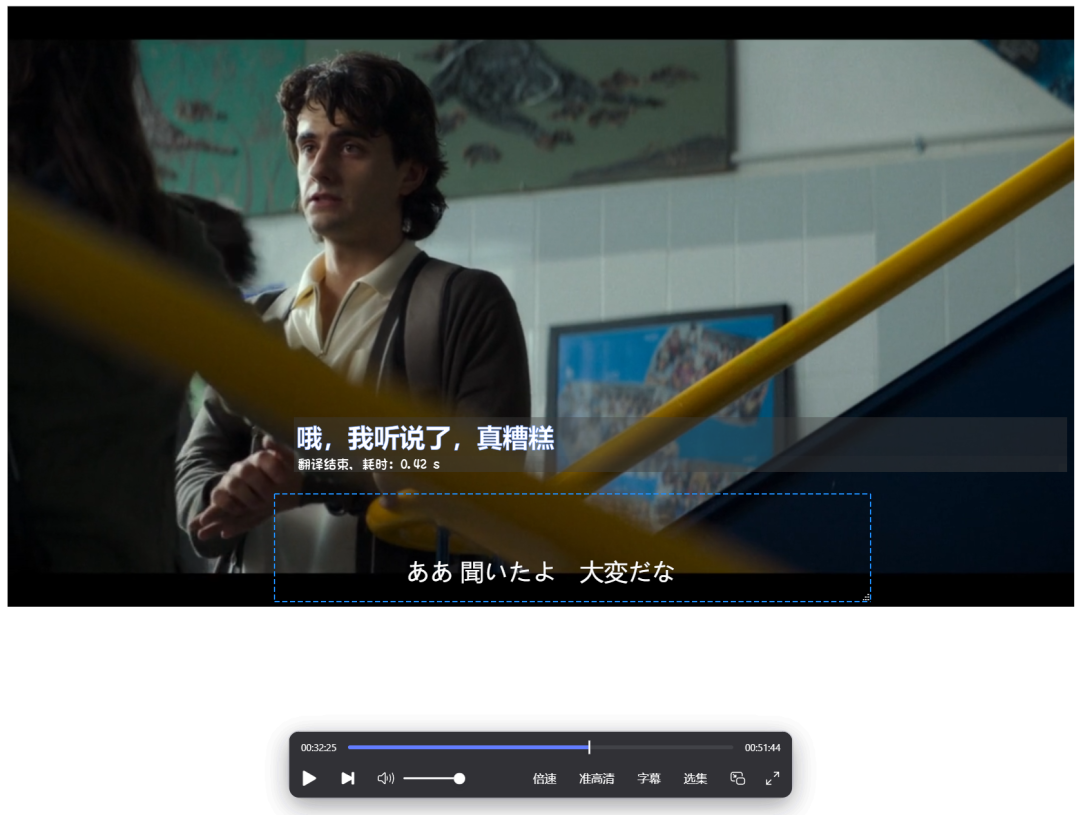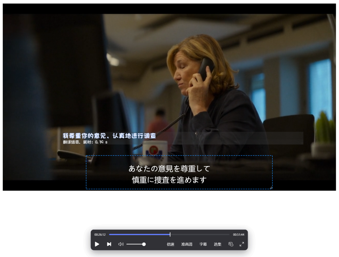 也就是说,它可以实时同步、实时更新,翻译出中文字幕。