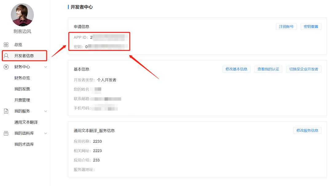 其实注册这个账号,最核心的目的,就是为了这个APP ID以及密钥。